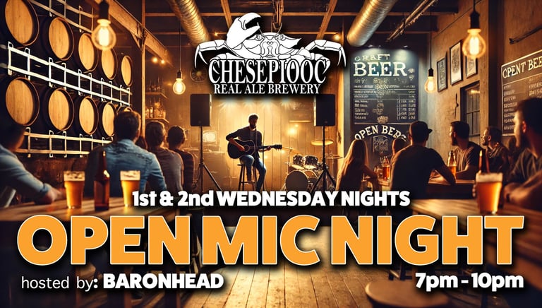 Be part of the start of a new live music venue in Crofton, MD. Join guitarist Baronhead at Chesepiooc Real Ale Brewery for open mics and jam nights focused on community and great sound.
